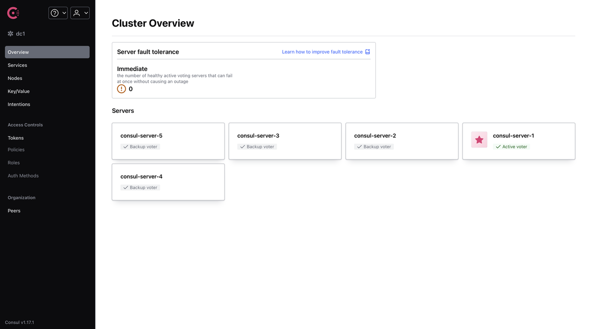 We have successfully setup and start our first Consul server! To create a cluster, we need to add more servers. In this section, we will add 4 more (total of 5) to have a vault tolerance of 2 nodes, which is a best practice.