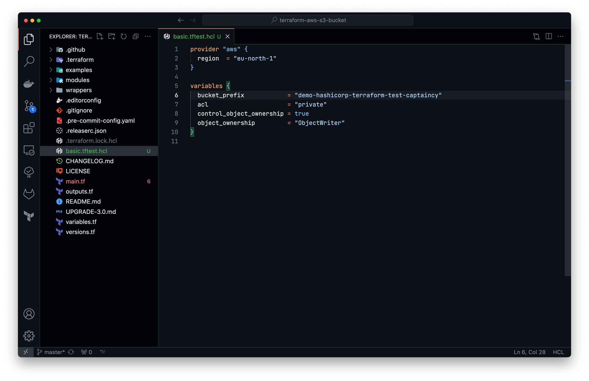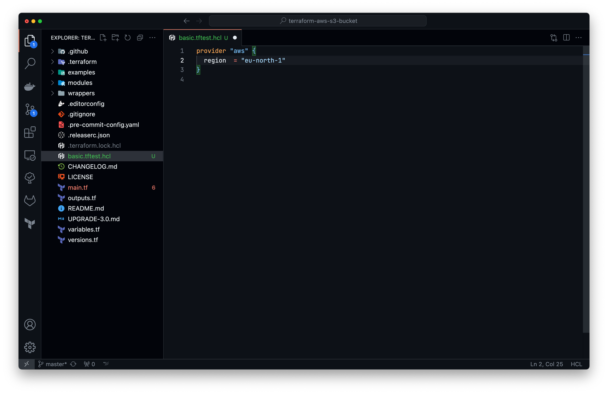 First, we need to create the test file itself. You are free to choose the name you want, but it must be suffixed by .tftest.hcl