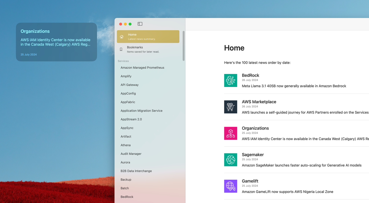 🪄 Widgets: Customize your desktop with Jeff’s widget, offering quick access to the most recent AWS updates.